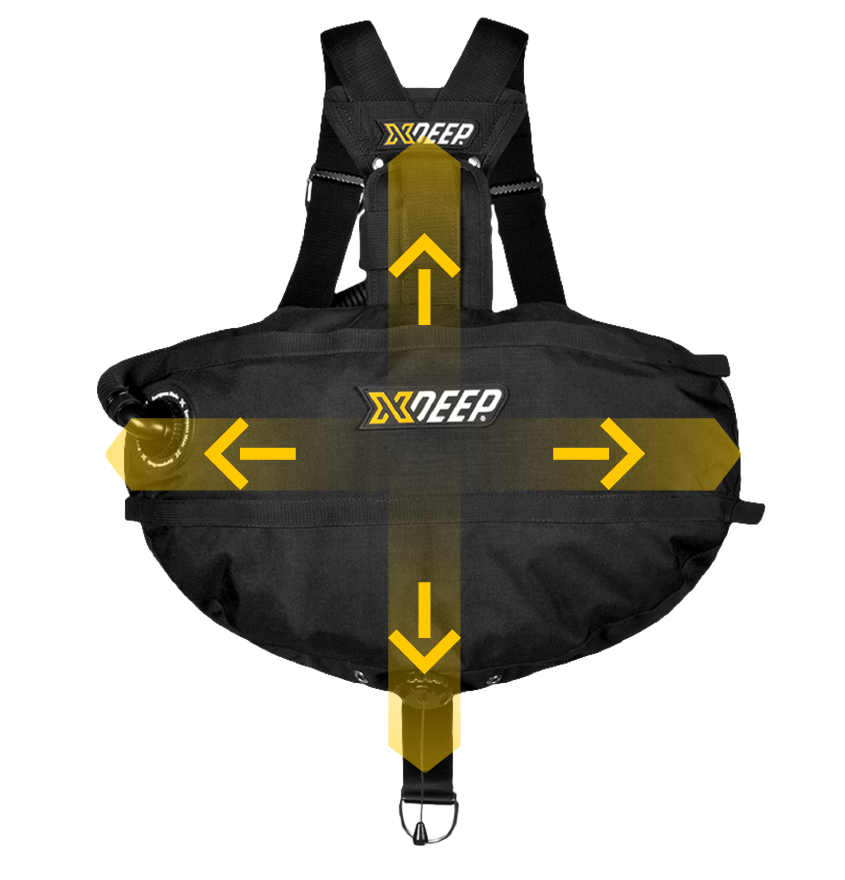 The STEALTH 2.0 design achieves a streamlined system that stays in tune with your anatomy. Whatever position you are in and regardless of how much gas you have in the wing, the distance of the centre of the wing away from the body is minimal.