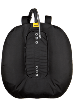Enlarging the upper part of the backplate achieves better weight distribution during the dive and removes load form the lumbar region. The lower plate design spreads the load equally well and allows for the optimal attachment of weight pockets and accessories.